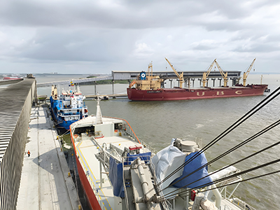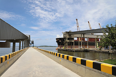 The infrastructure features new sealed conveyor belts that can transport materials directly from the storage silos to the ship, reducing the movement of loaded trucks.