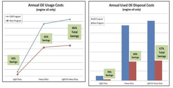 Switching to high quality lubrication resulted in considerable savings in oil usage and disposal costs.